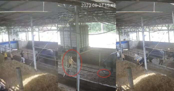 潇湘晨报报导,事发于周日(27日)下午近4时许,广西来宾市石龙镇中塘村有3名小孩在牛棚内玩耍,在牛栏外叫喊、蹦跳等,吓退原本靠著牛栏休憩的牛群。