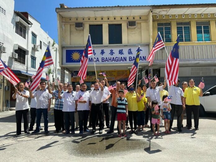 陈诠峰今日率领马华峇眼区会同仁,在该区会挥舞大小国旗以展现爱国情操时强调,国庆日是为了纪念我国是由三大民族先贤携手共创,所以一定要传承和发扬各族的文化特色。