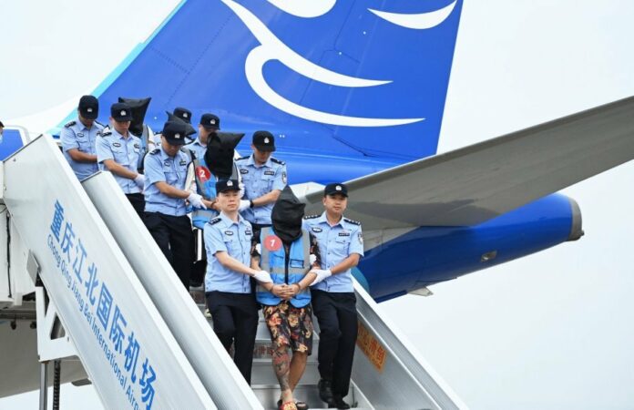 中新社报导,周一下午,随著3架中国民航包机降落在石家庄正定国际机场、郑州新郑国际机场和重庆江北国际机场,164名从事虚假投资理财类电信网络诈骗的嫌犯被河北、河南、重庆公安机关从寮国押解回国,加上前期由安徽公安机关押解回国的15名嫌犯,此次中寮警方开展警务执法合作抓获的179名电信网络诈骗嫌犯全部被押解回中国,涉及中国13个省(市)的270余起重特大跨境电信网络诈骗案成功告破。