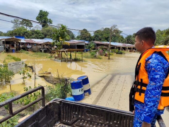 (美里12日讯)持续暴雨导致上游河水上涨,部分低洼地区引发山洪,洪水入侵苏必士地区造成水患淹水。