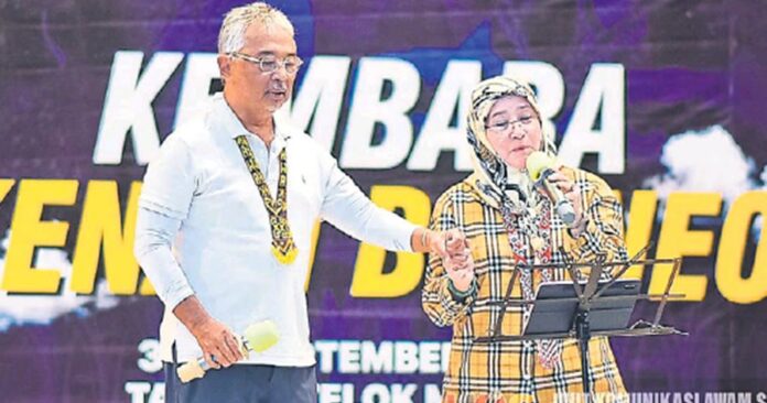 (诗巫13日讯)国家元首苏丹阿都拉陛下伉俪前晚在诗巫MUC礼堂晚宴上献唱2曲,现场气氛温馨美好。