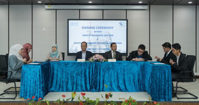 出席签约仪式的主宾有恒逸实业首席执行官陈连才和汶莱技术教育学院首席执行官兼董事莫哈末赞里。