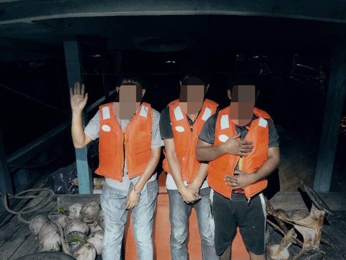 亚庇15日讯|图走私逾23万令吉统制品不果,3名不法份子昨晚在古达岸外,遭大马海事执法局连人带船扣押。