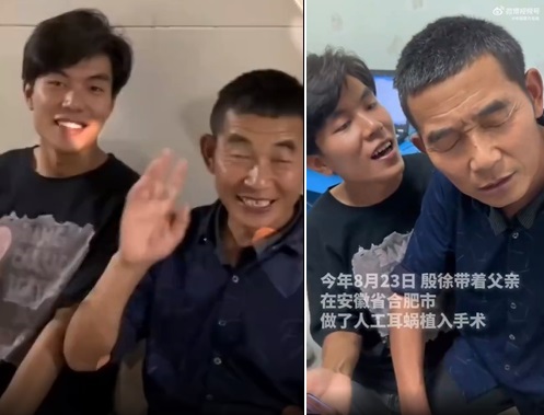 父亲听到“爸爸”的那一刻,他自己也感动得哭了,因为给父亲装人工耳蜗,是他一直都放在心里的承诺。