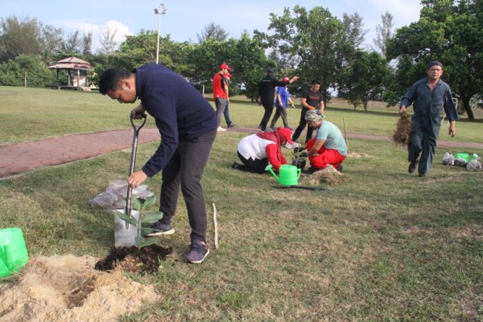 (马来奕16日讯)汶莱蚬标石油公司与马诗市政局合作于今日在马来奕银禧公园举行植树与海滩清洁活动。