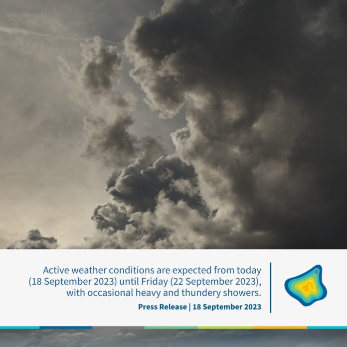 (汶莱斯市18日讯)预计从今天(9月18日)开始,一直持续到周五(9月22日)将会出现活跃的天气状况,其中汶莱的多个地区偶尔会有大雷雨。