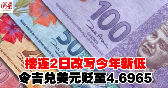 精选西马 接连2日改写今年新低 令吉兑美元贬至4.6965 2023年9月19日 (吉隆坡19日讯)令吉汇率跌跌不休,今日兑美元滑落至4.6965令吉,继昨天后再次改写今年新低纪录。Advertisement 令吉今日兑主要货币皆疲弱。 截至3点40分,令吉兑美元走贬0.16%,至4.6965令吉;兑新元则下滑0.11%,至3.4418令吉。 投资者正等待美联储(Fed)本周出炉的利率决议,这项决议将为市场提供新指引。