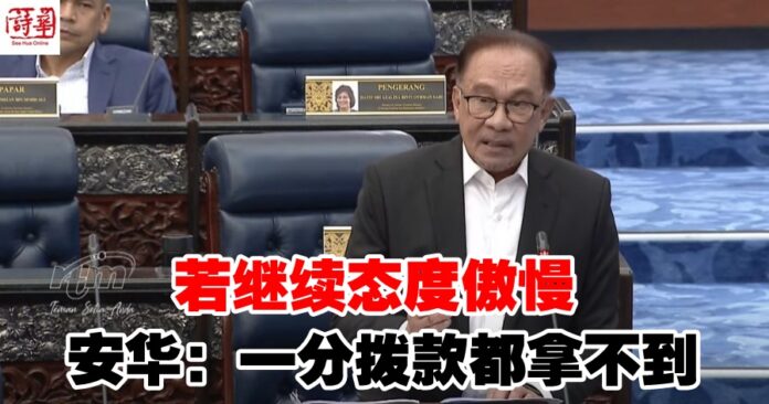 他今日出席在下议院,为第十二大马计划中期检讨报告部门总结时指出,反对党国会议员需调整态度,若继续态度傲慢,连一分拨款都拿不到。