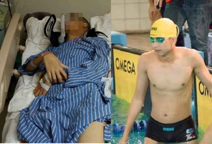 (台北21日讯)新北市一名身高192公分的张姓男高中生,是学校体育班的游泳队员,2018年底因在校内泳池进行课后跳水出发自主训练时,头部不慎撞及泳池地板,导致有外伤性颈椎骨折及脊髓损伤并四肢瘫痪的重伤害。