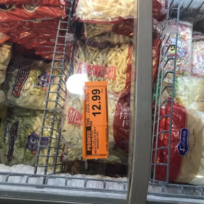 她还附上一张照片,显示了超市冷冻食品柜上的价格标签。显然,现在一公斤辛辣味的冷冻薯条售价为12令吉99仙。