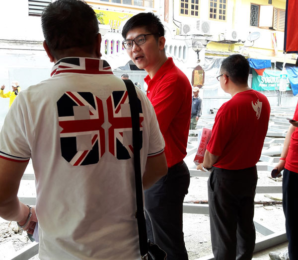 他日前巡视印度街的雨盖工程,对工程进度缓慢感到不满,并聆听许多商家大吐苦水。
