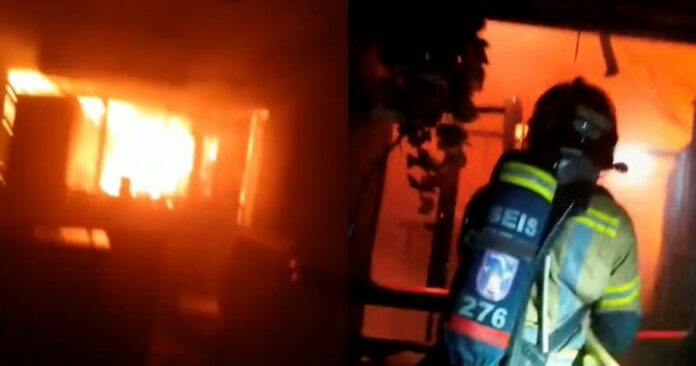 穆尔西亚市消防部门发布的影片显示,消防队员正在努力控制夜总会内的火焰。录影画面显示,大火烧毁了部分屋顶。