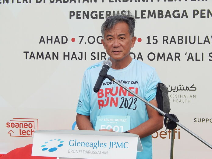 他于今日出席汶莱2023年世界心脏日跑步活动上致辞时指出,为此,鹰阁遮鲁东医疗中心(Gleneagles JPMC)很荣幸能够与健康推广中心合作“WAH & HEAL”社区计划,为公共部门和老年人口带来讲座、健康教育和筛检。