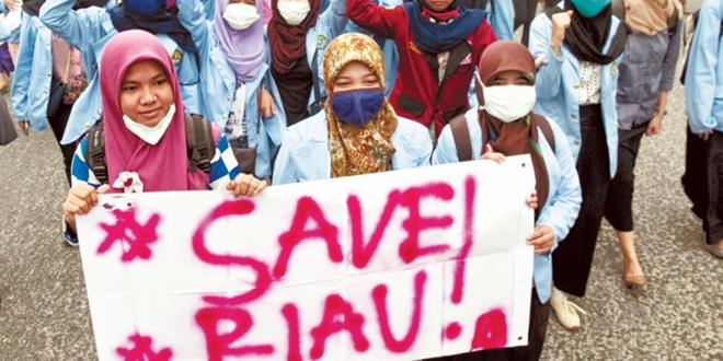 廖內省烟霾问题年復一年,当地民眾也开始难以容忍。上週一,在廖內省首府北干巴鲁市,就有数百人身穿蓝衣,响应一个民运组织的號召,参与「蓝天革命」抗议活动,在省政府办公室前,举牌示威,要求完善解决林火烟霾问题、取缔涉及烧林的油棕园公司。