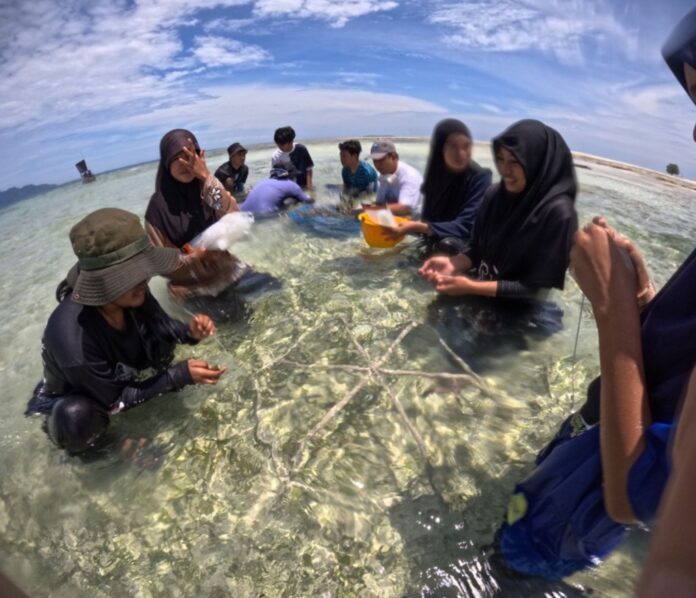 亚庇5日讯|本州一群青年在东海岸的仙本那岛进行珊瑚恢复活动。