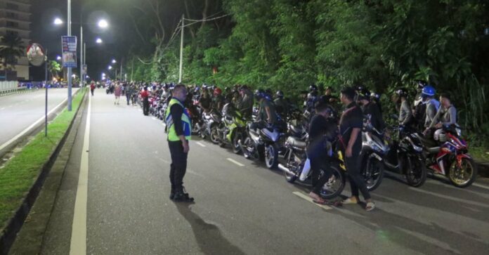 (槟城8日讯)一群飙车族凌晨时分在敦林苍祐大道飙摩哆,警方出动近100名警员,当场围捕逾200名飙车族!