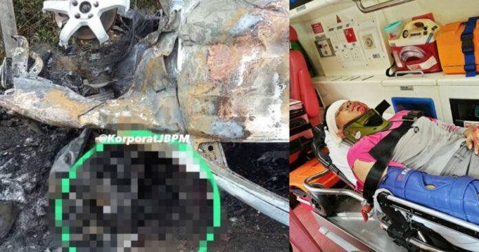 (加影12日讯) 轿车与摩哆相撞后起火燃烧,司机因来不及逃生活活被烧死。