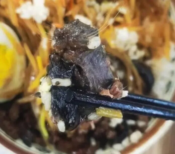 中央社报导,今年6月间,中国江西工业职业技术学院的学生餐厅供餐里夹杂鼠头,当事人拍发影音广传推特与微博。