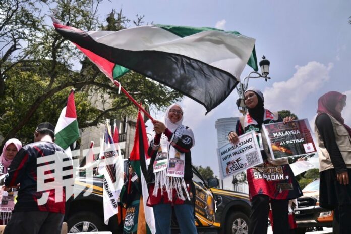(吉隆坡13日讯)由团结青年组织(Perpaduan Youth )策划的“支持和声援加沙和巴勒斯坦人”集会,集会者陆续抵达现场!