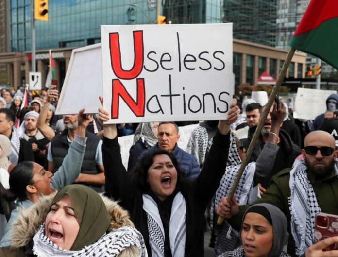 格里菲思强调说:“加沙的每个家庭在收到撤离命令后,沿着被堵塞和被破坏的道路前往南部时,他们遭到了轰炸,轰炸后有数十万人试图自救,但是他们无处可去。”