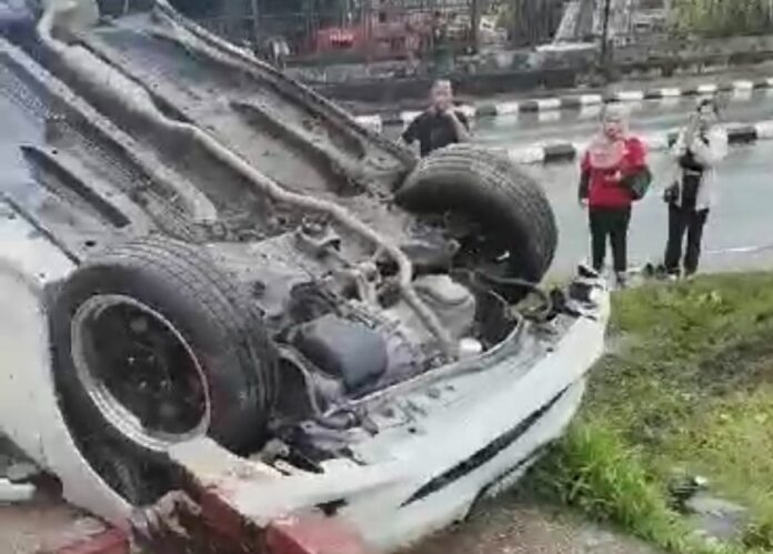 砂拉越南砂 古晋女开车失控 惨撞路堤翻滚四轮朝天 2023年10月19日 (古晋19日讯)雨天路滑车子失控撞击路堤翻滚上坡四轮朝天,幸车子没撞入义山的福山亭。Advertisement 上述意外事故是今早10时许发生在敦哈只5奥本路往青统方向路段,肇祸的巫裔女司机命大仅虚惊。 事发当时,肇祸的女司机驱车取道上述路段往目的地前进,不料肇意外事故。