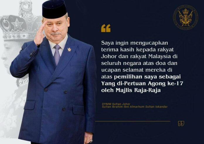 “朕在马来统治者会议中被选为第17任国家元首,感谢柔佛州子民及全国人民的祈祷和祝福。”