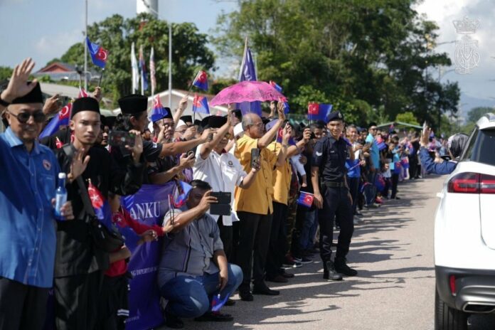 在士姑来大道通往新山王宫的沿途,都可看见民众、官员及学生等在路旁等候,并挥动著手中的柔佛州旗,迎接苏丹陛下。