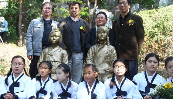 另一方面,由韩国和中国艺术家首次共同製作的日军韩中「慰安妇」少女像揭幕仪式,週三在韩国首都首尔城北区东小门洞私立汉城大学入口站附近的街路公园举行。