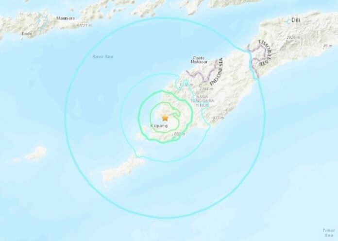 法新社报导,根据美国地质勘探局说法,这起地震于当地时间早上5时04分,发生在帝汶岛西部古邦附近,震源深度36.1公里。