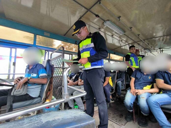 (威南15日讯)为了赚取每趟30令吉工资,一名已被吊销驾照长达12年的代驾厂巴司机铤而走险,接送外劳往返宿舍,被槟州陆路交通局执法员逮个正著!