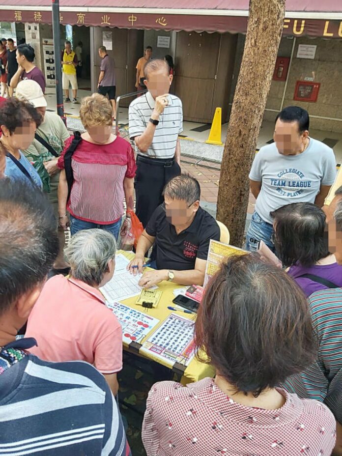 有公众发影片向《新明日报》申诉,最近在福禄寿大厦外看到一名阿伯摆摊,售卖万字票号码,一个卖2新元(约6令吉95仙)。