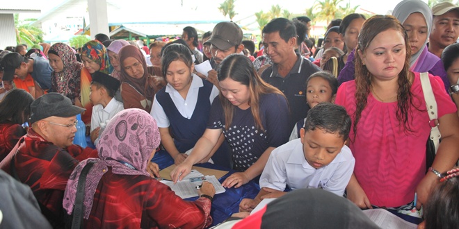 (本报诗巫17日讯)有逾2000名学生今日在诗巫市政第三小学,获得政府资助的书包与文具。