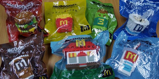 据了解,今期流行潮流玩物Nanoblock,与麦当劳推出一系列精细的以麦当劳食品为主题Nanoblock套装,色彩缤纷及高品质的塑料让人眼睛发亮,此次积木套装一共包含Big Mac汉堡、McFlurry Orea、McCafe咖啡、薯条、苹果派、汽水以及麦当劳餐厅。