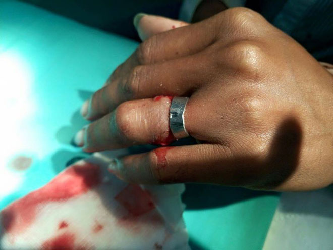 男子过后被带往医院,在医护人员的协助下,先为他打麻醉针解去疼痛后,才由消防员使用工具,将卡在手指的戒指剪开取出。