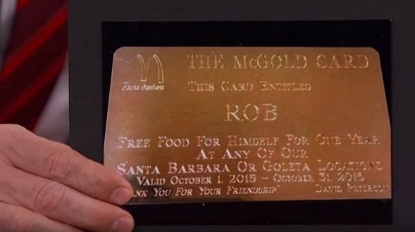 想得到金卡不简单,麦当劳一般只会给对本地做出极大贡献的人赠与金卡。在罗勃洛之前,大卫还將金卡赠送给慈善家拉里(Larry Crandell)作为90岁生日礼物。拉里会获得金卡,是因为他在数十年间帮助圣塔芭芭拉社区筹集数百万美元,获得金卡后,在他的余生中,可以在圣塔芭 芭拉免费享用麦当劳。