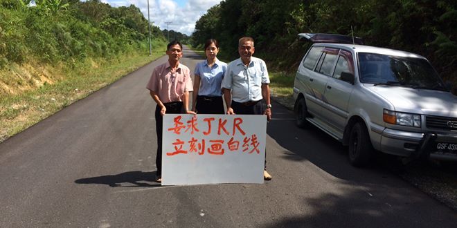 砂拉越中砂 端曼光坡B发展区 路面未划分界线 2015年11月19日 陈耔橞巡视新修竣的道路,并呼吁当局尽快为道路划上路线。 (民丹莪18日讯)马拉端县州议员陈耔橞于今早在民丹莪民主行动党支部工作队的陪同下,巡视了马拉端曼光坡及马拉端B发展区。Advertisement 陈耔橞表示,这两条道路完工已有2个月之久,但至今未划上路面分界线。 “这两条路非常的狭窄,因此路面分界白线是非常的重要的。此外,这2条路在晚间也显得特别昏暗,所以路旁的白线是夜间驾驶员的最佳指标。” 此外,陈耔橞希望当局能尽快为道路划上路线,以确保道路使用者的安全。