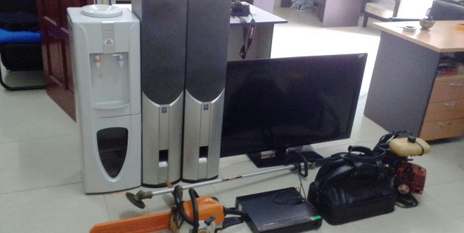 贼赃包括46寸电视机、音响系统、光碟播放机、电锯及吸尘机等。
