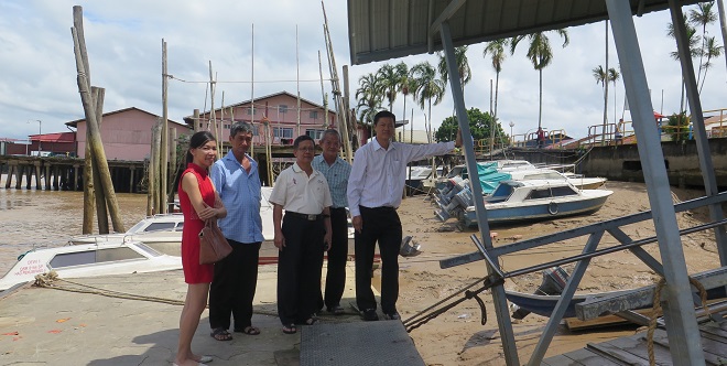 (本报泗里街27日讯) 行动党泗里街区国会议员黄灵彪今日下午视察泗里街码头处第一座浮箱,该码头浮箱已经损坏将近一星期。随同出席尚其特别助理王振金,州议员特别助理翁秀薇律师及行动党数名党员的陪同下,前往该码头了解浮箱损坏情况。