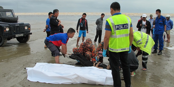(本报沐胶19日讯)于昨日因船只翻覆并沉入河中而失踪的Nurul Atikah Rosli遗体,今早在离沐胶城镇5公里处的沐胶蒲田海边被发现。