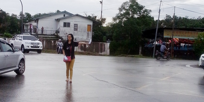 (本报诗巫19日讯)东山路与黄景和路口交通灯失灵,造成交通严重混乱,1名少女临时充当交警,在马路中央指挥交通,直到叶海量州议员召来交通警察后,责任才交回交通警察。
