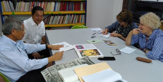 砂拉越中砂 澳洲学者抵访 搜集婆罗洲二战资料 2015年12月5日 会长陈钖监及本固鲁蔡雄基(左起)向访员讲述诗巫华人二战经历时影。 (本报诗巫4 日讯)澳洲国立大学人类学学者 Christine Helliwell博士及Valerie Mashman女士,日前到访砂拉越华族文化协会进行交流。Advertisement 两者目前正为一项有关婆罗洲二战记忆的研究计划进行资料搜集。 砂华文协会长陈锡监及名誉会长本固鲁蔡雄基,为她们讲述诗巫华人的战争经历及华人历史学者对有关时期的撰述概况。