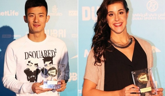 (迪拜8日综合电)世界羽联週一晚在迪拜超系赛总决赛的赛前欢迎晚宴上,公佈了2015赛季的各个奖项评选结果;最终,中国男单世界冠军諶龙和西班牙女单世界冠军卡罗琳娜,分別以大热姿態获得年度最佳男女运动员奖。