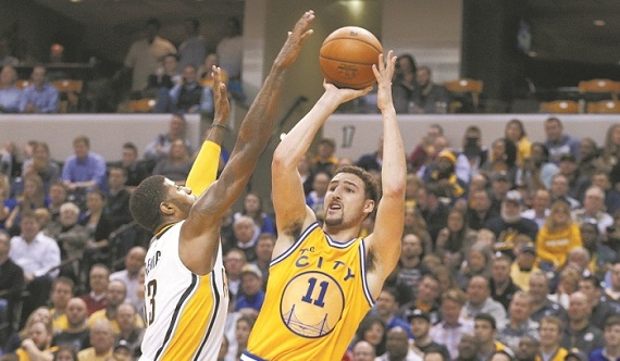 (华盛顿9日综合电)金州勇士在週二的美国职篮联赛(NBA)常规赛,凭著「水花兄弟」库里和汤普森的神勇表现,客场以131比123战胜印第安纳溜马,豪取开局23连胜。同时,这也是勇士在客场的13连胜,超越1969/70赛季的纽约尼克,创造了联盟新的客场连胜纪录。