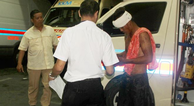 砂拉越南砂 酒后捉弄人 醉猫遭人击伤 2015年12月10日 伤者被送抵医院急诊部时摄。 酒后作弄人换来硬物击头,醉猫负伤来到砂督警局求助,值勤警察拨电召来救护车将他送医。Advertisement 上述伤人事故是前天晚上9时左右发生在砂督商业店某间咖啡店后方。伤者为35岁来自加帛的友族。 伤者是由急诊部安排救护车将他送来医院接受检查护理。