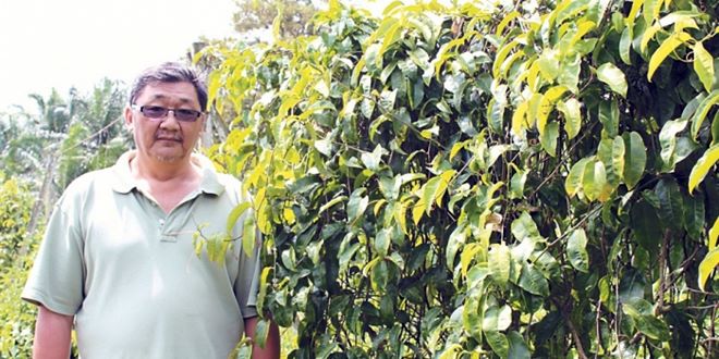 来自居鑾县占美新村的汪坤木(51岁)2011年开始种植百香果,目前拥有5英亩的百香果园。他种植百香果缘起于多年前到表弟家做客,发现表弟家庭院的一角爬满金黄色的水果,黄澄澄甚是漂亮,经表弟介绍才知是金蜜百香果。