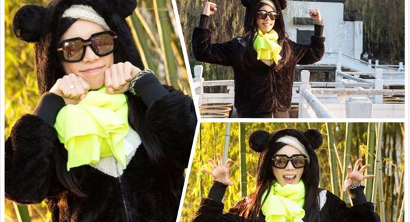 童心未泯的她更穿上毛毛外套扮黑熊,化身萌萌熊,一时振臂扮大只,一时张牙舞「爪」。