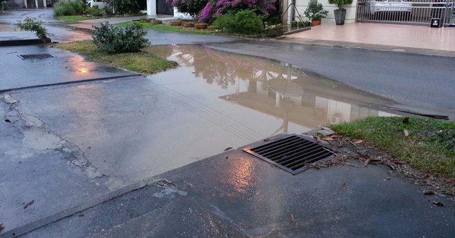 砂拉越民生 投诉无人理 门口变水坑 2015年1月21日 巴达旺市议会最近在三哩珍珠花园进行2O多年来第一次的路面超薄铺柏油工程时,路面,住宅门口留下水坑,车辆经过时,污水溅进住宅内,华人新年就到了,请援手帮帮我,救救我!Advertisement