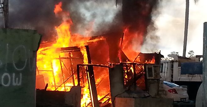 砂拉越南砂 员工宿舍莫名失火 造数万令吉损失 2016年1月3日 火患的现场一片浓烟滚滚。 (成邦江2日讯)斯里阿曼市一间工厂的员工宿舍于今晚近7时左右,不知何知失火,造成宿舍内的寝具、用具及一批价值不菲的器材在短短的数分钟内付之一炬。Advertisement 据该工厂号东披露,该场意外的失火,约造成数万令吉的损失。所幸发生大火时员工都不在宿舍内,并未酿成人员的伤亡。 斯里阿曼救火局在火患发生约数十分钟后,赶抵现场将火势控制。