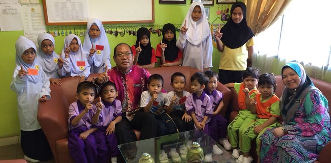 「欢迎回到纳闽班带小学上课,希望大家能够融入这个和谐的小学大家庭生活里。」