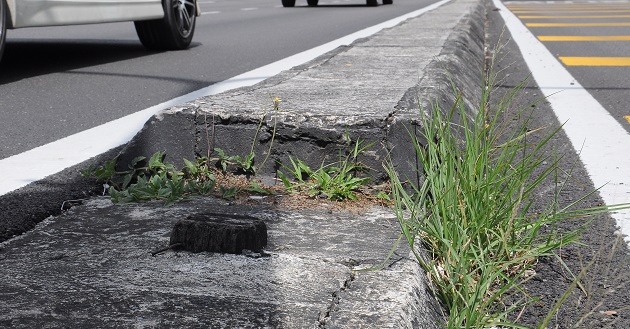 诗巫旧乌也路(圣伊丽莎白中学前方)重铺沥青后,不料却造成部分路段的分界堤的洋灰墩高矮不一,使到该洋灰墩失去应有的作用。